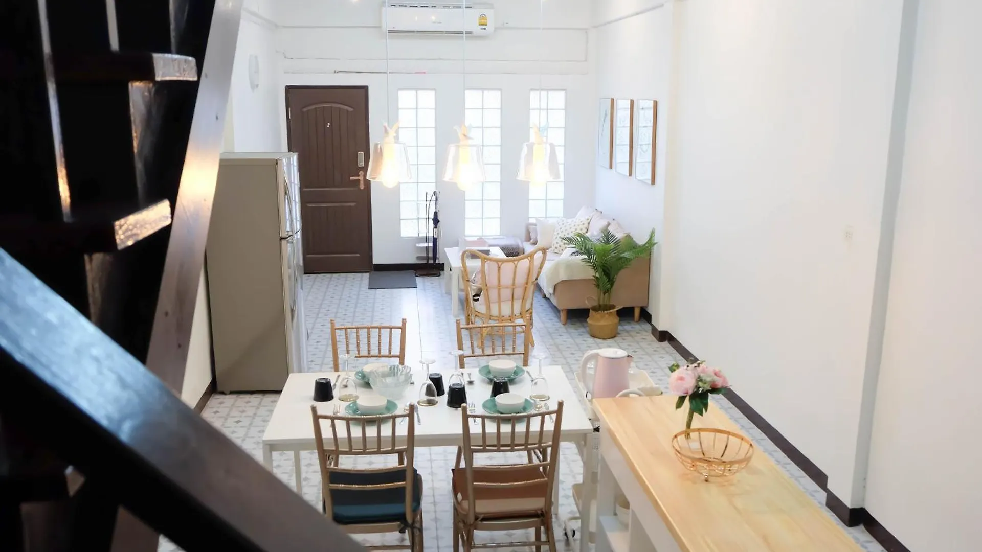 La villa Home175 Peaceful 2Br Near Bts & Iconsiam offre accesso a una cucina completamente attrezzata dotata di un bollitore elettrico e un frigo. Gli ospiti possono cenare al ristorante Sorry I'm hungry burger Cafe, a 550 metri dal luogo. Situata abbastanza vicino alla villa Home175 Peaceful 2Br Near Bts & Iconsiam, la stazione della metropolitana Krung Thon Buri è facilmente raggiungibile per gli ospiti.